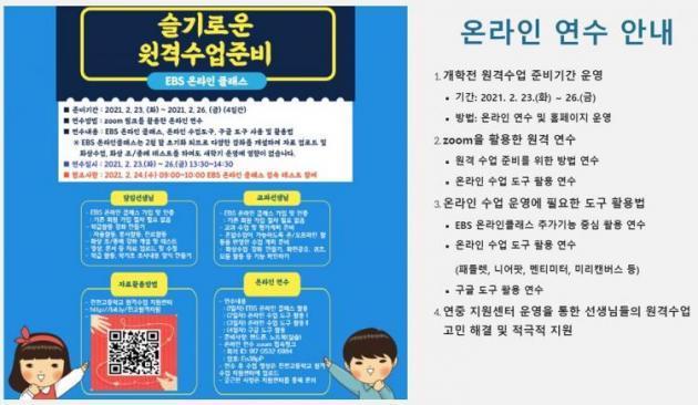 ¿¬¼ö´Â EBS ¿Â¶óÀÎŬ·¡½º Ȱ¿ë¹ý, ¿Â¶óÀÎ ¼ö¾÷µµ±¸(ÆÐµé·¿, ´Ï¾îÆÌ), ±¸±Û ¼ö¾÷ µµ±¸ µî ¿ø°Ý ¼ö¾÷À» À§ÇÑ ³»¿ë°ú, °³ÇÐ ÈÄ È¥ÇÕ ¼ö¾÷¿¡ ´ëóÇÒ ¼ö ÀÖ´Â ´Ù¾çÇÑ ¼ö¾÷ »ç·Ê ³ª´® ¹× ½Ç½À µî ¿ø°Ý¼ö¾÷ Áغñ¿Í °ü·ÃµÈ ³»¿ëÀ¸·Î ±¸¼ºµÆ´Ù.