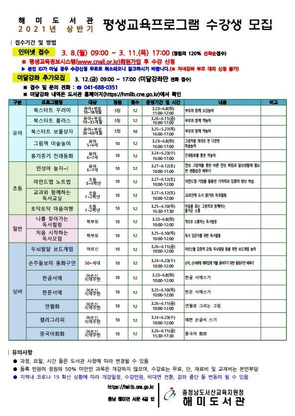 ¼»ê±³À°Áö¿øÃ»Çع̵µ¼°ü, 2021³â »ó¹Ý±â Æò»ý±³À°ÇÁ·Î±×·¥ ¼ö°»ý ¸ðÁý