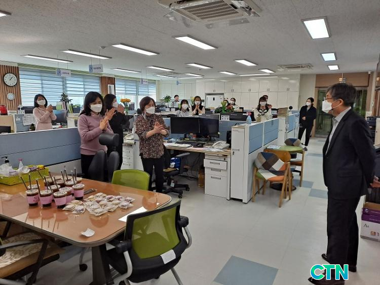 À̳¯ Çà»ç´Â Äڷγª19·Î ÀÎÇÏ¿© ºÎ¼º°·Î ½Ç½ÃÇÏ¿´´Ù. ±³À°ÀåÀÌ Á÷Á¢ °¢ ºÎ¼¸¦ ¹æ¹®ÇÏ¿© Á÷¿ø°ú ´ã¼Ò¸¦ ³ª´©°í Ä¿ÇÇ¿Í ¸¶Ä«·ÕÀ» Àü´ÞÇÏ´Â µî ¡®¼¼°è ¿©¼ºÀÇ ³¯¡¯ÀÇ Àǹ̸¦ µÇ»õ°å´Ù.