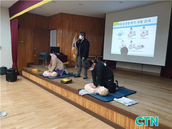 ½Ã·®ÃʵîÇб³ Àü±³»ý 55¸íÀ» ´ë»óÀ¸·Î ½Ç½ÃÇÑ 8ÀÏ ±³À°Àº ½ÉÆó¼Ò»ý¼úÀÇ Çʿ伺°ú ¼ø¼, ÀÚµ¿½ÉÀåÃæ°Ý±â »ç¿ë¹ý µîÀ» Æ÷ÇÔÇÑ À̷б³À°°ú ½Ç½À¿ë ¸¶³×Å· ¸ðÇüÀ» ÇлýµéÀÌ Á÷Á¢ ´·¯º¸¸ç ¸öÀ¸·Î ÀÍÈ÷´Â ½Ç½ÀÀ¸·Î ÁøÇàµÆ´Ù.