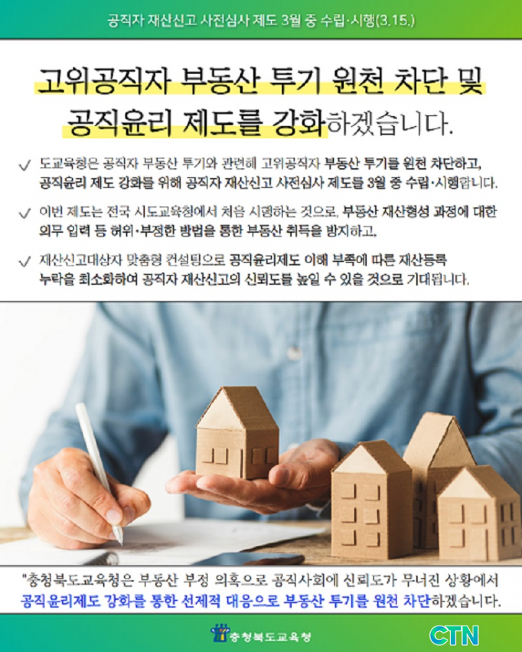 µµ±³À°Ã»Àº ÃÖ±Ù »çȸÀû ¹®Á¦·Î ¶°¿À¸¥ °øÁ÷ÀÚ ºÎµ¿»ê Åõ±â¿Í °ü·ÃÇÏ¿© °íÀ§°øÁ÷ÀÚ ºÎµ¿»ê Åõ±â¸¦ ¿øÃµ Â÷´ÜÇÏ°í °øÁ÷À±¸® Á¦µµ °È¸¦ À§ÇØ »õ·Î¿î 'ÃæÃ»ºÏµµ±³À°Ã» °øÁ÷ÀÚ Àç»ê½Å°í »çÀü½É»ç Á¦µµ' ¸¦ 3¿ù Áß ¼ö¸³¡¤½ÃÇàÇÑ´Ù.
