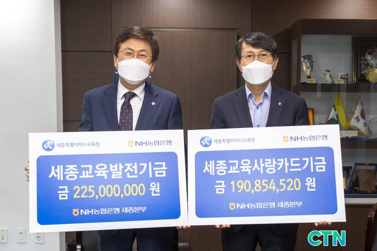 À̹ø¿¡ ¼¼Á¾½Ã±³À°Ã»ÀÌ NH³óÇùÀºÇàÀ¸·ÎºÎÅÍ Àü´Þ¹ÞÀº ±Ý¾×Àº ±³À°±Ý°í ¾àÁ¤¿¡ µû¸¥ Çù·Â»ç¾÷ºñ 2¾ï 2õ 5¹é¸¸ ¿ø°ú ¼¼Á¾±³À°»ç¶ûÄ«µå±â±Ý 1¾ï 9õ 1¹é¸¸ ¿øÀ» ÇÕÇÑ ÃÑ 4¾ï 1õ 6¹é¸¸ ¿øÀÌ´Ù.