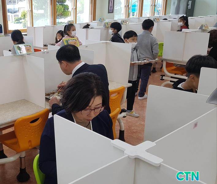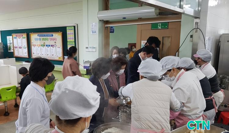 ¶ÇÇÑ, Äڷγª19 ¿¹¹æÀ» À§ÇÑ ¾ÈÀüÇÑ Çб³±Þ½Ä ¿î¿µÀ¸·Î ½Ä´ç ÀÔ±¸¿¡ ¼Õ¼Òµ¶Á¦ ºñÄ¡ µî °³ÀÎÀ§»ý¼öÄ¢ Áؼö, ½Ä»ç ½Ã ½Äʰ¡¸²¸· ¼³Ä¡, ÁöÁ¤Á¼®Á¦, ÁÙ ¼±â µî ±Þ½ÄÇöÀåÀ» ²Ä²ÄÈ÷ È®ÀÎÇϰí ÇÔ²² Á¡½É½Ä»çÇϸç Çб³±Þ½Ä°ü°èÀÚµéÀÇ ÀǰßÀ» ¼ö·ÅÇß´Ù.