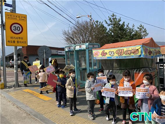 Ä·ÆäÀο¡¼´Â Çб³ ÁÖº¯À» Åë°úÇÏ´Â Â÷·®À» ´ë»óÀ¸·Î ¾î¸°ÀÌ º¸È£±¸¿ª ³»¿¡¼ÀÇ '1´Ü ¸ØÃã!, 2ÂÊ ÀúÂÊ!, 3ÃÊ µ¿¾È!, 4°í ¿¹¹æ'ÀÇ ±¸È£¸¦ ¿ÜÄ¡¸ç ½ºÄðÁ¸ 30kmÀÌÇÏ ¼Çà, Á¤Â÷½Ã Á¤Áö¼± Áö۱â, ¾ÈÀü¼Óµµ Áؼö µîÀ» È«º¸Çϰí, À¯¾Æ µî º¸ÇàÀÚ¸¦ ´ë»óÀ¸·Î '¼±´Ù, º»´Ù, °Ç³Í´Ù'ÀÇ 3¿øÄ¢ µî º¸Çà °ü·Ã ¾ÈÀü ¼öÄ¢À» ¾È³»Çß´Ù