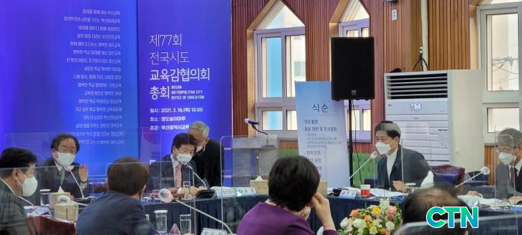 [CTN ±³À°½Å¹® = Çϼº¸Å ±âÀÚ] Àü±¹½Ãµµ±³À°°¨ÇùÀÇȸ°¡ Àå¼®¿õ Àü¶ó³²µµ±³À°°¨ÀÇ °ÇÀǸ¦ ¹Þ¾Æµé¿© Áö¹æ°ø¹«¿ø ¼ö´ç ¹× ÅëÇտÇб³ °ü·Ã ¹ý±Ô °³Á¤À» ¿ä±¸Çϱâ·Î Çß´Ù.