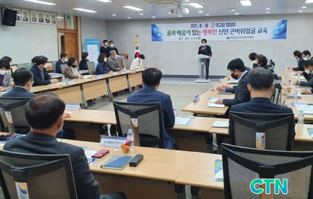 [CTN ±³À°½Å¹® = Çϼº¸Å ±âÀÚ] Àü¶ó³²µµ½Å¾È±³À°Áö¿øÃ»(±³À°Àå ±èÀçÈï)Àº Áö³ 22ÀÏ ´ëȸÀǽǿ¡¼ '²Þ°ú ¹è¿òÀÌ ÀÖ´Â ÇູÇÑ ½Å¾È Å«¹ÙÀ§¾ó±¼ ±³À°'À» ÁÖÁ¦·Î °ü³» ÃÊ¡¤Áß¡¤°í Çб³ÀåÀÌ Âü¿©ÇÑ °¡¿îµ¥ Á¤º¸ ³ª´®°ú ÇùÀÇÀÇ ÀÚ¸®¸¦ ¸¶·ÃÇß´Ù.