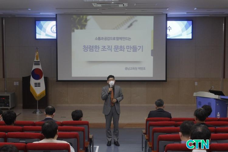 [CTN ±³À°½Å¹® = ÃÖ¿ë°ü ±âÀÚ] ¿¹»ê±³À°Áö¿øÃ»(±³À°Àå ¾È¼ºÈ£)Àº 29ÀÏ Ã»·ÅÇÑ °øÁ÷¹®È Á¶¼ºÀ» À§ÇÏ¿©, ÃæÃ»³²µµ±³À°Ã» °¨»ç°ü½Ç ¹é¸íÈ£ û·ÅÀ±¸®ÆÀÀåÀ» °»çÁøÀ¸·Î ±¸¼ºÇÏ¿© ºÎÆÐ¹æÁö û·Å ±³À°À» ½Ç½ÃÇϰí, û·Å ´ÙÁü¹®À» ÀÛ¼ºÇÏ´Â ½Ã°£À» °¡Á³´Ù.