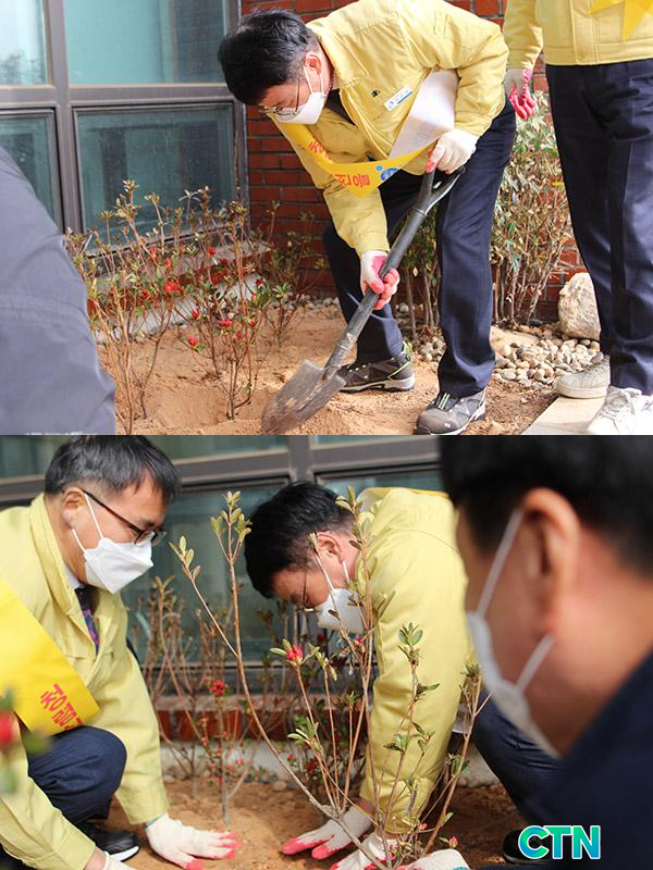 À̾îÁø û·Å-½Ä¸ñ Çà»ç¿¡¼ '¾Æ»ê±³À° û·ÅÀÇ ²É'À» Ȱ¦ ÇÇ¿ì°Ú´Ù´Â ¸¶À½À¸·Î Çö°ü ¾Õ È´Ü¿¡¼ ¿µ»êÈ« Çູ³ª¹« ½É±â Çà»ç¸¦ °¡Áø µÚ û»ç ÁÖº¯ÀÇ Áö¿ª ȯ°æÁ¤È Ȱµ¿À» ½Ç½ÃÇß´Ù.