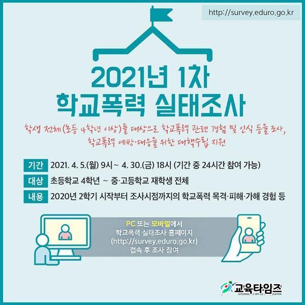 [CTN ±³À°½Å¹® = ±èÁö¿ì ±âÀÚ] °æ±âµµ±³À°Ã»(±³À°°¨ ÀÌÀçÁ¤)Àº ¿À´Â 5ÀϺÎÅÍ 30ÀϱîÁö Çб³Æø·Â ¿¹¹æ°ú ´ëÀÀÀ» À§ÇØ ÃʵîÇб³ 4ÇгâºÎÅÍ °íµîÇб³ 3Çгâ ÇлýÀ» ´ë»óÀ¸·Î '2021³â Çб³Æø·Â ½ÇÅÂÁ¶»ç'¸¦ ½Ç½ÃÇÑ´Ù.