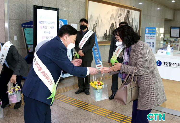 [CTN ±³À°½Å¹® = Á¤¹ÎÁØ ±âÀÚ] ´ëÀü±¤¿ª½Ã±³À°Ã»(±³À°°¨ ¼³µ¿È£)Àº 5ÀÏ ¿ÀÀü 8½Ã~9½Ã, º»Ã» 1Ãþ Çö°ü¿¡¼ Á÷¿øµéÀ» ´ë»óÀ¸·Î ¡®»ç¶ûÀÇ ²É ³ª´® Çà»ç¡¯¸¦ ½Ç½ÃÇß´Ù.