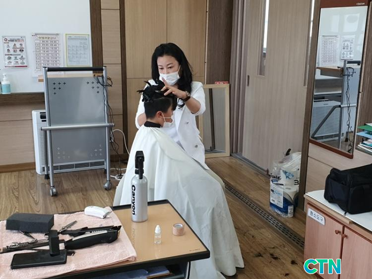 ´ëÀü¿¡¼ ¹Ì¿ë »ç¾÷À» Çϰí ÀÖ´Â ÀÌ¿µ¼ ¾¾°¡ źºÎÃʸ¦ ¹æ¹®ÇØ ¾ÆÀ̵éÀÇ ¸Ó¸®¸¦ Á÷Á¢ Àß¶óÁá´Ù.