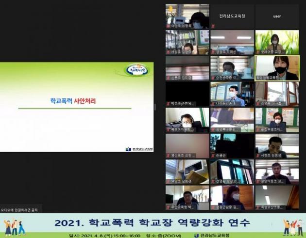 [CTN ±³À°½Å¹® = Çϼº¸Å ±âÀÚ] Àü¶ó³²µµ±³À°Ã»(±³À°°¨ Àå¼®¿õ)ÀÌ Çб³Æø·Â¿¹¹æ ¹× ´ëÃ¥¿¡ °üÇÑ ¹ý·ü °³Á¤ ÃëÁö¿¡ ÀûÇÕÇÑ Çб³Àå ¿ª·®°È¸¦ À§ÇØ Áö³ 8ÀÏ ¿Â¶óÀÎ ½Ç½Ã°£ ¿¬¼ö¸¦ ½Ç½ÃÇß´Ù.