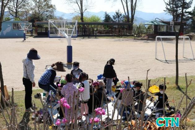 À̳¯, ¿ÀÀü »õ½Ï¹Ý(3¼¼) ¾ÆÀ̵éÀº ¾Õ¸¶´ç ³ª¹«µ¥ÄÚ °ø°£¿¡ µ¾ÀÚ¸®¸¦ ±ò°í '´ÙÀ°ÀÌ ½É¾îº½'À¸·Î º½À» ¾Ë·ÈÀ¸¸ç, ²ÉÀÙ¹Ý(4¼¼) ¾ÆÀ̵éÀº ÀÚÀÛ³ª¹«½£°ú Âɷηս£¼Ó³îÀÌÅÍ¿¡ ²ÉÀܵ𰡠µÑ·¯Áø 'ȲÅê±æ °É¾îº½'À¸·Î º½ ³»À½À» ¸¸³£Çß´Ù.