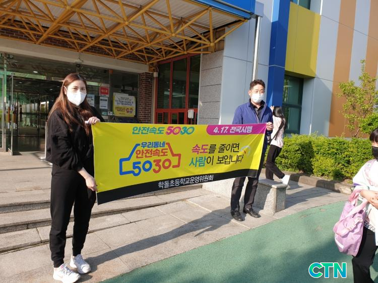 [CTN ±³À°½Å¹® = °¡±ÝÇö ±âÀÚ] Çе¹ÃʵîÇб³¿î¿µÀ§¿øÈ¸¿¡¼´Â 19ÀÏ ÇлýµéÀÇ ¾ÈÀüÇÑ µî±·±æÀ» À§ÇØ Çе¹ÃʵîÇб³ ¾Õ¿¡¼ µî±·±æ ±³Åë¾ÈÀü Ä·ÆäÀÎÀ» ½Ç½ÃÇß´Ù.
