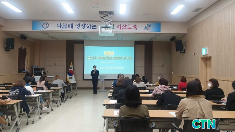 [CTN ±³À°½Å¹® = °¡±ÝÇö ±âÀÚ] ÃæÃ»³²µµ¼»ê±³À°Áö¿øÃ»(±³À°Àå Àå¿ìÇö)Àº 20ÀÏ ¾î¿ï¸²½Ç¿¡¼ °ü³» ÃÊ‧Áß‧°í‧Ư¼öÇб³ ÇкθðȸÀå 54¸íÀÌ Âü¼®ÇÑ °¡¿îµ¥, 2021 ¼»ê½Ã ÇкθðȸÀåÇùÀÇȸ ¹× ¿¬¼ö¸¦ ½Ç½ÃÇß´Ù.