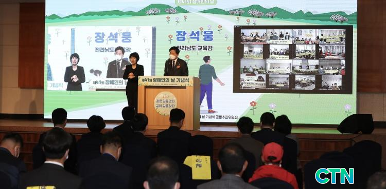 [CTN ±³À°½Å¹® = Çϼº¸Å ±âÀÚ] Àå¼®¿õ Àü¶ó³²µµ±³À°°¨ÀÌ Á¦41ȸ Àå¾ÖÀÎÀÇ ³¯À» ¸Â¾Æ Àå¾ÖÇлýµéÀÇ ÁÖüÀû »îÀ» °¡´ÉÇÏ°Ô Çϴ Ư¼ö±³À°À» °ÈÇÏ°Ú´Ù°í ¹àÇû´Ù.