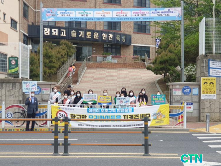 [CTN ±³À°½Å¹® = ÀÓÁ¾º¹ ±âÀÚ] ¸íõÃʵîÇб³´Â 'Çб³°¡±â ¾ÈÀüÇÑ ±æ ÇÁ·ÎÁ§Æ®'·Î Áö³ 4¿ù 27ÀÏ¿¡ ±³¹® ¾Õ¿¡¼ ÇлýÀÚġȸ, ³ì»öÇкθðȸ, ±³Á÷¿ø, º¸·É¸ð¹ü¿îÀüÀÚȸ¿Í ÇÔ²² ±³Åë¾ÈÀü Ä·ÆäÀÎÀ» ½Ç½ÃÇß´Ù.