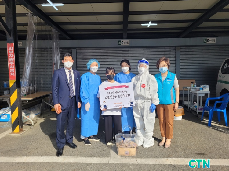 ¿ÁõÇູ±³À°Áö¿øÃ» ÃÖ°æÈñ ±³À°ÀåÀº "Çлýµé ½º½º·Î °¨»çÀÇ ´ÞÀ» ¸ÂÀÌÇÏ¿© °¨»çÀÇ ¸¶À½À» ÀüÇÒ ¼±»ý´Ô°ú ÀÇ·áÁøÀ» »ý°¢Çϰí Áø·ÎüÇèÀÇ ±³À°±âºÎ ÇüÅ·ΠµûµíÇÑ ¸¶À½°ú °¨»çÀÇ ¸¶À½À» ÀüÇÏ´Â ¸ð½ÀÀÌ ÂüÀ¸·Î ±âƯÇÕ´Ï´Ù. Äڷγª 19·Î ÀÎÇØ À§Ãà µÇ¾îÁö±â ½¬¿î °¨»çÀÇ ¸¶À½À» ¸ð¾Æ Àü´ÞÇϰí ÀÇ¹Ì ÀÖ°í ¶æ±íÀº °÷¿¡ ±× ¸¶À½À» ÀüÇÒ ¼ö ÀÖ¾î ±â»Ú°Ô »ý°¢ÇÕ´Ï´Ù. ¶ÇÇÑ, ÇлýµéÀÌ ¹ÎÁÖÀûÀÎ ÀÇ»ç°áÁ¤ °úÁ¤À» °ÅÄ¡¸ç, ÀǰßÀ» ¼ö·ÅÇØ °¡´Â ¸ð½ÀÀ» ÅëÇØ ÇлýÀÚÄ¡°¡ ¼ºÀåÇÏ´Â ¸ð½ÀÀ» ÁöÄѺ¸°Ô µÇ¾î Çлý ¿©·¯ºÐµé¿¡°Ô °¨»çÇÏ´Ù"¶ó´Â ¸»°ú ÇÔ²² º» Çà»çÀÇ Àǹ̸¦ ÀüÇß´Ù.