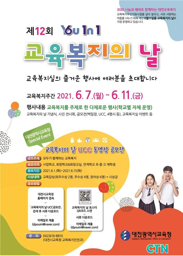 '±³À°º¹ÁöÀÇ ³¯'Àº ¡®³Ê¿Í ³ª´Â ÇѸ¶À½¡¯(You In I) Àǹ̷Π±³À°º¹Áö¿ì¼±Áö¿ø»ç¾÷À» ¾Ë¸®°í ±àÁ¤Àû ÀÎ½Ä È®»êÀ» À§ÇØ ´ëÀü±³À°Ã»Àº Àü±¹ ÃÖÃÊ·Î 2008³âºÎÅÍ 6¿ù 11ÀÏÀ» ±³À°º¹ÁöÀÇ ³¯·Î ÁöÁ¤ÇÏ¿© ¿î¿µÇϰí ÀÖ´Ù.