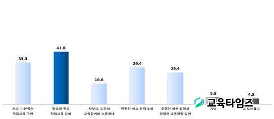 Áö³ÇØ Á¶»ç¿¡¼´Â '¾ÈÀüÇÑ Çб³È¯°æ Á¶¼º'(60.2%),'¸ÂÃãÇü Áø·ÎÁ÷¾÷±³À° °È'(36.4%)¸¦ ¼±ÅÃÇß´Ù.