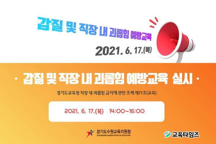 [CTN ±³À°½Å¹® = ±èÁö¿ì ±âÀÚ] °æ±âµµ¼ö¿ø±³À°Áö¿øÃ»(±³À°Àå ÀÌÇü¿ì)Àº 17ÀÏ ¼ö¿ø Áö¿ª ³» ±³Á÷¿ø 500¿©¸íÀ» ´ë»óÀ¸·Î °©Áú ¹× Á÷Àå ³» ±«·ÓÈû ¿¹¹æ±³À°À» ½Ç½ÃÇß´Ù.