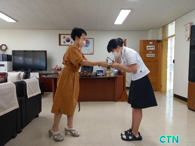 ´ëÀü±«Á¤ÁßÇб³ ÃÖÀÓ¼ø ±³ÀåÀº ±è¡Û¡ÛÇлýÀÇ ¼±ÇàÀ» ³ôÀÌ ÄªÂùÇÏ¸ç ±³³» ¼±Çà»ó ¼ö»óÀÚ·Î ÃßõÇÏ°í µµ¼ µîÀÇ »óǰÀ» ¼±¹°ÇÏ¸ç °Ý·ÁÇß´Ù.