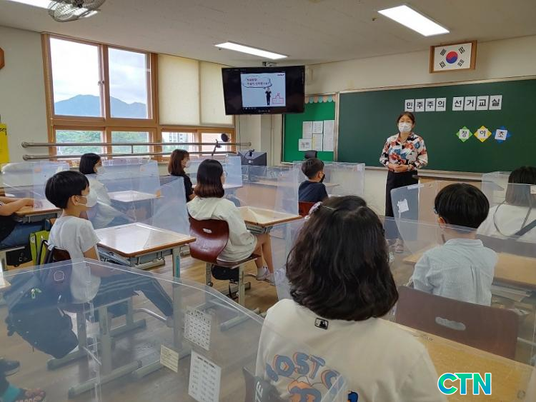 [CTN ±³À°½Å¹® = À̱ⱹ ±âÀÚ] Àå¾ßÃʵîÇб³(±³Àå À̼÷°æ) ÇлýÀÚġȸ¿¡¼´Â ÃæÃ»ºÏµµ¼±°Å°ü¸®À§¿øÈ¸ °»ç¸¦ ÃÊûÇÏ¿© Àå¾ßÃÊ ÇлýÀÚġȸ ÀÓ¿øµéÀ» ´ë»óÀ¸·Î ¹ÎÁÖÁÖÀÇ ¼±°Å±³½Ç ¿¬¼ö¸¦ ½Ç½ÃÇß´Ù.