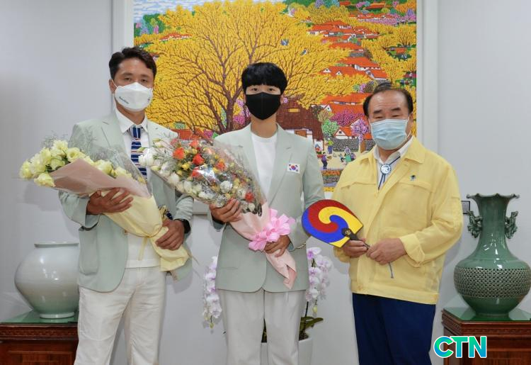 [CTN ±³À°½Å¹® = ÃÖ¿µÁØ ±âÀÚ] ÀåÈÖ±¹ ±³À°°¨ÀÌ 3ÀÏ ¿ÀÈÄ 1½Ã ±¤Áֽñ³À°Ã»À» ¹æ¹®ÇÑ 2020 µµÄì¿Ã¸²ÇÈ '¾ç±Ã 3°ü¿Õ' ¾È»ê ¼±¼ö¸¦ ȯ¿µÇß´Ù.