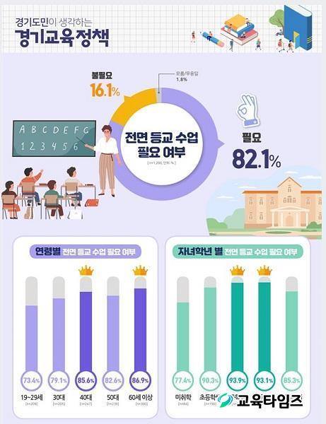 [CTN ±³À°½Å¹® = ±èÁö¿ì ±âÀÚ] °æ±âµµ±³À°Ã»(±³À°°¨ ÀÌÀçÁ¤)ÀÌ 7¿ù ½Ç½ÃÇÑ ¿©·ÐÁ¶»ç °á°ú °æ±âµµ¹Î 10¸í °¡¿îµ¥ 8¸íÀÌ 'Àü¸é µî±³°¡ ÇÊ¿ä(82.1%)'ÇÏ´Ù°í ¹àÇû´Ù.