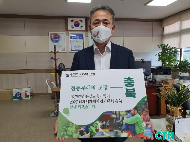 ±è»ó¿ ±³À°ÀåÀº "2027 Çϰ輼°è´ëÇаæ±â´ëȸ°¡ ´ëÇѹα¹ÀÇ Áß½É ÃæÃ»±Ç¿¡ À¯Ä¡µÇ±â¸¦ 10,787¸í À½¼º±³À°°¡Á·°ú ÇÔ²² Àû±ØÀûÀ¸·Î ÀÀ¿øÇÑ´Ù"¶ó°í ¸»Çß´Ù.