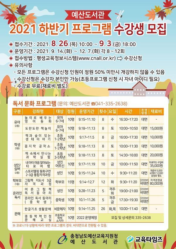 ¿¹»êµµ¼°ü, 2021³â ÇÏ¹Ý±â Æò»ý±³À° ÇÁ·Î±×·¥ ¼ö°»ý ¸ðÁý