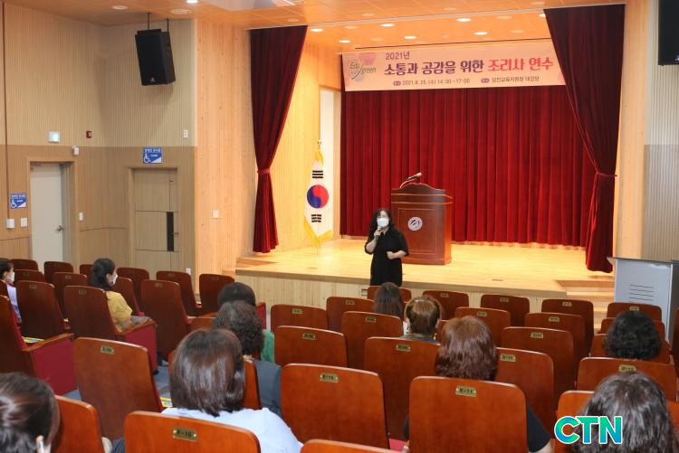 [CTN ±³À°½Å¹® = ÇѼºÁø ±âÀÚ] ´çÁø±³À°Áö¿øÃ»(±³À°Àå ±è¿ëÀç)Àº 2021³â Çб³±Þ½Ä Á¶¸®»ç 40¿©¸íÀ» ´ë»óÀ¸·Î '¼ÒÅë°ú °ø°¨À» ÅëÇÑ Çб³ ±Þ½Ä ¸¸Á·µµ Çâ»ó'À̶ó´Â ÁÖÁ¦·Î ¿¬¼ö¸¦ ½Ç½ÃÇß´Ù.
