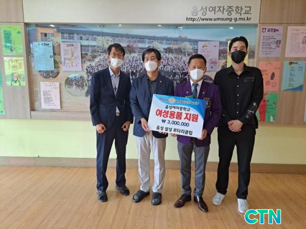 [CTN ±³À°½Å¹® = Á¤±â¼· ±âÀÚ] À½¼º±º À½¼º¿©ÀÚÁßÇб³(±³Àå È«¼®Áß)¿Í ±¹Á¦·ÎŸ¸®3740Áö±¸ À½¼º¼³¼º·ÎŸ¸®Å¬·´(ȸÀå ±èÀå¼·)Àº 9ÀÏ À½¼º¿©ÀÚÁßÇб³¿¡¼ Äڷγª ºí·ç ±Øº¹À» À§ÇÑ ³ë·ÂÀÇ ÀÏȯÀ¸·Î ¿©¼º¿ë º¸°ÇÀ§»ý¿ëǰÁö¿ø±Ý Àü´Þ½ÄÀ» °¡Á³´Ù.