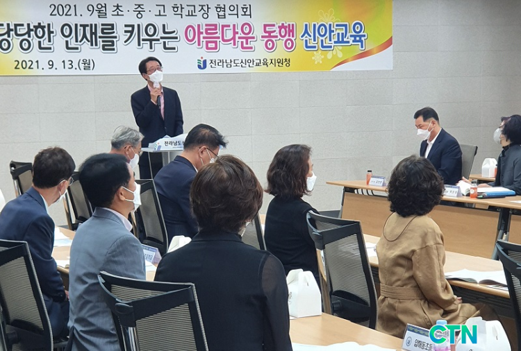 [CTN ±³À°½Å¹® = Çϼº¸Å ±âÀÚ] Àü¶ó³²µµ½Å¾È±³À°Áö¿øÃ»(±³À°Àå ±èÇѰü)Àº Áö³ 13ÀÏ(¿ù) ½Å¾È±º¼ö(¹Ú¿ì·®)°¡ Âü¼®ÇÑ °¡¿îµ¥ '²Þ°ú ¹è¿òÀÌ ÀÖ´Â ¾Æ¸§´Ù¿î µ¿Çà ½Å¾È±³À°' ½ÇÇöÀ» À§ÇÑ ÇϹݱâ ÃÊ.Áß.°í Çб³Àå ÇùÀÇȸ¸¦ °³ÃÖÇß´Ù.