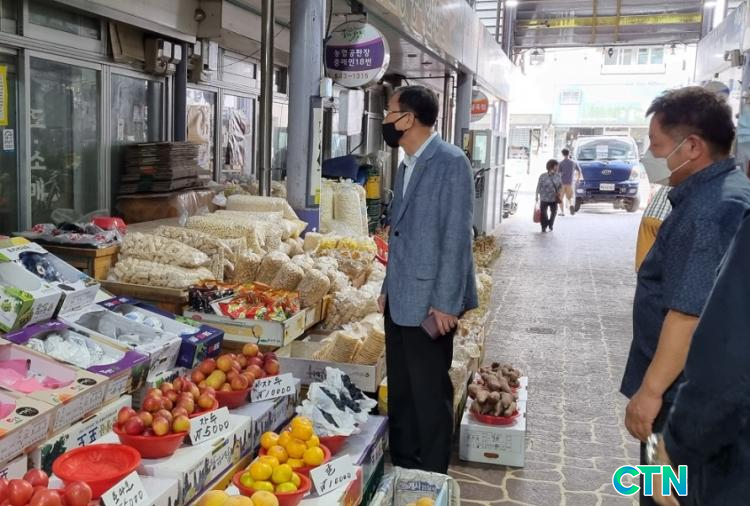 ¿¬±Ô¿µ ±³À°Àå(¿ÞÂÊ)ÀÌ ÀüÅë½ÃÀåÀ» ã¾Æ Ãß¼® ¸ÂÀÌ À庸±â Çà»ç¿¡ Âü¿© Çß´Ù.