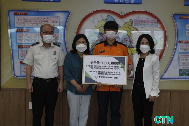[CTN ±³À°½Å¹® = ÃÖ¿ë°ü ±âÀÚ] ¿¹»ê±³À°Áö¿øÃ»(±³À°Àå ¹®ÃßÀÎ)Àº 14ÀÏ, ¿¹»ê¼Ò¹æ¼¸¦ ¹æ¹®ÇØ Ãß¼® ¸íÀý¿¡ ±¹¹Î ¾ÈÀü¿¡ Çå½ÅÇϰí ÀÖ´Â Àǹ«¼Ò¹æ¿øÀÇ ³ë°í¸¦ À§·Î, °Ý·ÁÇϰí À§¹®±Ý 100¸¸¿øÀ» Àü´ÞÇß´Ù.