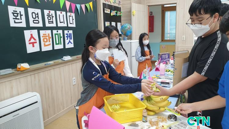 1,2Çгâ ÇлýµéÀº ÆÇ¸Å¸¦ ´ã´çÇÏ´Â °úÁ¤¿¡¼ ¼Õ´Ô¿¡°Ô Ä£ÀýÇÏ°Ô ÀÀ´ëÇÏ°í ¹°°Ç °ªÀ» °è»êÇÏ´Â ¿¬½ÀÀ» ÇÒ ¼ö ÀÖ¾úÀ¸¸ç, ¸¶ÄÏ¿¡ Âü¿©ÇÑ 3~6Çгâ ÇлýµéÀº ¼ÅøÁö¸¸ ÃÖ¼±À» ´ÙÇØ ÁغñÇÑ µ¿»ýµé¿¡°Ô °Ý·ÁÀÇ ¸»À» ÇÔ²² ÀüÇß´Ù.