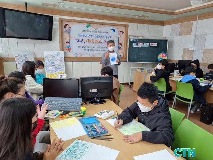 ÀÛ°¡¿ÍÀÇ ¸¸³² ¹× ¼ÒÅëÀ» ÅëÇØ ÇлýµéÀÇ »ó»ó·Â°ú ¹®ÇÐÀû °¨¼ö¼ºÀ» ÇÔ¾çÇϰí, Àι® ¼Ò¾ç ÁõÁøÀ» À§ÇÑ Çà»çÀÎ '2021.Çб³·Î ã¾Æ°¡´Â ÀÛ°¡ ÃÊû °¿¬È¸'°¡ ¿·Á ±×¸²Ã¥ '°¾ÆÁö¶Ë'À» ±×¸° Á¤½Â°¢ ±×¸²Ã¥ ÀÛ°¡´Ô°ú ÇÔ²² 'º¸°í, »ó»óÇϰí, ±×¸®°í'¸¦ ÁÖÁ¦·Î ¸ÚÁø µ¶¼ Çà»ç°¡ ÁøÇàµÇ¾ú´Ù.